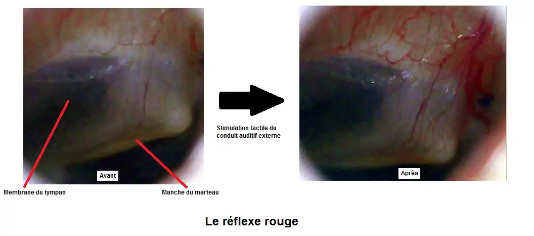 Il s’agit d’un réflexe de fibres nerveuses du nerf trijumeau déclenchant une vasodilatation des vaisseaux sanguins au niveau des contours du canal auditif externe et de la membrane tympanique du tympan[1].