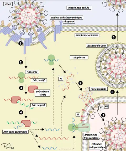 - (en) Cet article est partiellement ou en totalité issu de l’article de Wikipédia en anglais intitulé « Viral replication » (voir la liste des auteurs).