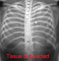 L'objet à radiographier, placé entre les positions et , à distance de la source pour que l'on puisse considérer qu'il est soumis à faisceau homogène de photons X ou gamma. Au fur et à mesure que le faisceau de photons traverse l'objet, il est atténué en fonction de l'épaisseur traversée et du coefficient d'atténuation . Ce coefficient d'atténuation dépend de l'énergie du photon et du numéro atomique Z de la structure rencontrée à la profondeur . L'organisme humain possède des tissus comme les os, très opaques aux photons, possédant donc un coefficient d'atténuation très élevé. Cela vient du fait que le tissu osseux est composé d'éléments de numéro atomique élevé comme le calcium. Le corps est aussi composé de tissus mous, peu opaques aux rayons X. Parmi eux, on différencie les organes de densité hydrique car composés essentiellement d'eau (muscles, foie) des densités graisseuses dont le coefficient d'atténuation est légèrement plus faible. Enfin, le poumon étant essentiellement composé d'air, il est qualifié d'organe de densité aérique. En effet le tissu pulmonaire, comme l'air, laisse passer la quasi-totalité des rayonnements. À la sortie du patient, le faisceau de photons n'est plus homogène mais est caractéristique des tissus traversés, on parle d'image radiante . Ces photons interagissent avec le détecteur, y déposant une énergie représentative des tissus traversés. Selon le mode de fonctionnement du détecteur, cette énergie sera utilisée pour produire l'image. La forte différence de coefficient d'atténuation entre les os et les autres tissus, crée un fort contraste de l'image, ce qui fait des rayons X un excellent outil d'imagerie osseuse. Pour obtenir une image d'organes n'ayant pas une densité spécifique, il est possible d'apporter in situ un produit de contraste de forte densité. C'est le cas pour l'imagerie des vaisseaux (injection intraveineuse d'iode), pour l'imagerie du système digestif (ingestion ou injection de baryte, à base de baryum), pour l'imagerie des articulations, ou arthroscopie (injection intra-articulaire d'iode) ou encore par exemple pour l'imagerie du système de reproduction de la femme, ou hystéroscopie (injection d'iode).