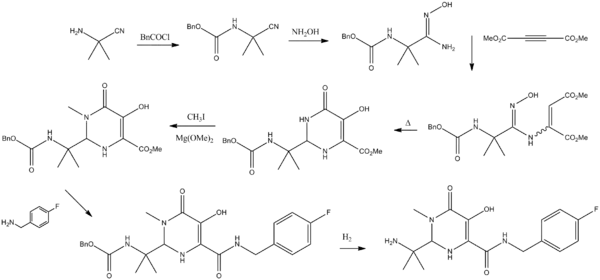 Nom UICPA N-(2-(4-(4-fluorobenzylcarbamoyl) -5-hydroxy-1-méthyl-6-oxo-1,6-dihydropyrimidin -2-yl)propan-2-yl)-5-méthyl -1,3,4-oxadiazole-2-carboxamide