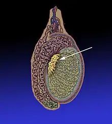 Le rete testis est un réseau de canaux des testicules issus des tubes séminifères droits dans le mediastinum testis.