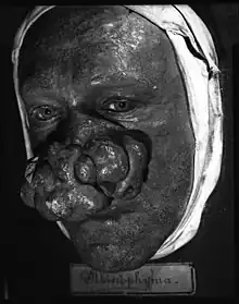 Cette affection est causée par une infiltration granulomateuse secondaire à une rosacée évoluée. Elle touche principalement les hommes de plus de cinquante ans et elle a longtemps été considérée à tort comme étant la conséquence d'une consommation excessive d'alcool[1], alors que d'autres facteurs de risques sont aujourd'hui identifiés, comme la prévalence familiale ou l'origine géographique (Irlande, Angleterre, Écosse, Scandinavie, Europe de l'Est)[2],[3].