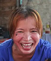 - Fou rire : type de rire incontrôlé, inapproprié et qui dure bien au-delà du rire classique. Il existe une forme de pathologie, le fou rire prodromique, qui est associé à plusieurs syndromes neuropsychiatriques, décrit pour la première fois par Féré[10]. Ce rire pathologique est rencontré après des lésions de certaines parties du cerveau, en particulier l'hypothalamus, le gyrus cortical antérieur ou le lobe temporal. L'acide valproïque en injection intraveineuse peut aussi provoquer cet état de rire prodromique.