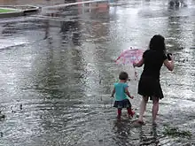 Le ruissellement urbain est une cause majeure d'inondation (inondations urbaines, inondation de terres ou de propriétés dans un environnement bâti). Il est causé par les précipitations qui surchargent la capacité des systèmes de drainage, tels que les égouts pluviaux[4]. Déclenchée par des crues soudaines, des ondes de tempête, des inondations de débordement ou des fonte des neiges, l'inondation urbaine se caractérise par des impacts répétitifs, coûteux et systémiques sur les communautés, que ces communautés soient ou non situées dans des plaines d'inondation formellement désignées ou près de l'eau[5].