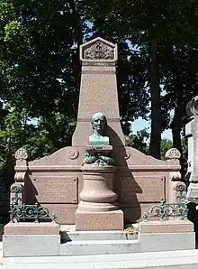- ↑ En 1892, à la suite d'une initiative du Docteur Thomas Lindsley Bradford, médecin et homéopathe à Philadelphie, la tombe où reposait Hahnemann devint la propriété du Collège Hahnemann de Philadelphie. Les participants du congrès international d’homéopathie de Londres de 1896 considèrent que le cimetière du Père-Lachaise s’accordait mieux à la réputation de Hahnemann et un comité est nommé afin de lever des fonds dans ce but : cf. La mort du Docteur Samuel Frédéric Christian Hahnemann et ses deux tombeaux.