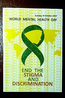 Affiche pour la Journée mondiale de la santé mentale en 2023. Le ruban vert est le symbole de la santé mentale.