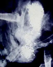 - ↑ Slavin RE, Swedo J, Cartwright J Jr, Viegas S, Custer EM. Lead arthritis and lead poisoning following bullet wounds: a clinicopathologic, ultrastructural, and microanalytic study of two cases. Hum Pathol ; 1988 ; 19:223–235