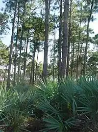 Serenoa repens palmiers nains, en sous-bois des arbres Pinus elliottii