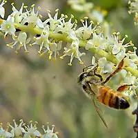 • Fleurs : inflorescences naissant entre les feuilles, leur pédoncule étant plus courts que celui des feuilles. Fleurs de 4-5 mm, avec 3 carpelles, de couleur blanc d'ivoire, 3-6 étamines. Les inflorescences sont émises dès que les températures le permettent.