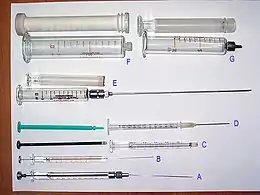 - (en) Cet article est partiellement ou en totalité issu de l’article de Wikipédia en anglais intitulé « Syringe » (voir la liste des auteurs).