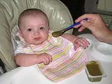 La diversification alimentaire est le recours à une alimentation solide. Elle est l’issue naturelle de l’évolution de l’alimentation chez les mammifères. La diversification est fonction de la dentition et de la motricité orofaciale (pt), propres aux mammifères. Chez le bébé humain, la variation des sources d’alimentation le conduit progressivement au même type d’alimentation que le milieu dans lequel il vit. Cette période de transition est plus ou moins longue (de six mois à plusieurs années) et se fait, en principe, en fonction de la maturation du système de digestion de l’enfant et de ses capacités psychomotrices à choisir, mastiquer et déglutir des aliments solides. Cette nouvelle alimentation, proposée progressivement au bébé, prend peu à peu le pas sur le lait maternel ou son substitut.