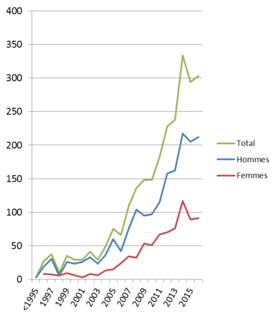 - ↑ Ces évolutions statistiques reflètent à la fois la diffusion du virus, mais également le renforcement des programmes de dépistage intervenu à partir de 2004.