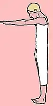 Le patient doit se tenir debout, talons joints, bras tendus, puis fermer les yeux. On évalue alors la capacité du patient à maintenir sa posture. S'il ne parvient pas à rester stable, on parle d'ataxie statique.