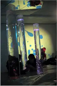 Ce lieu est spécialement conçu pour offrir des stimuli, éventuellement sens par sens, dont via des effets lumineux fixes et mouvants, des jeux de couleurs et d'intensité variable, de textures, de sons et musique, de parfums (huiles essentielles supposées relaxantes ou stimulantes, en général), etc.. L'utilisation de différentes textures de matières sur le sol, les objets et les murs, la présence éventuellement d'un grand lit à eau permet une exploration tactile inhabituelle. Le sol est agencé de façon à stimuler la recherche d'équilibre. L'espace est typiquement adapté par la personne accompagnante et stimulante pour répondre au besoin spécifique de la ou des personne(s) à stimuler. Certains auteurs tels que Hutchinson en 1994[9] ont plutôt insisté sur l'aspect esthétique du lieu alors que d'autres ont plutôt insisté sur son utilité thérapeutique face à certains troubles cognitifs, tels Hulsegge en 1987[2] ou Kewin en 1994.