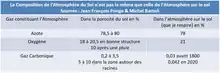 Le tableau ci-dessous établit une composition comparée entre l'air du sol et l'air atmosphérique extérieur[55].