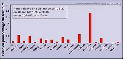 - ↑ AEE, Losses of agricultural areas to urbanisation Document Actions Graph showing estimated loss of agricultural land in 20 EU countries due to urbanization between 1990 and 2000 based on an analysis of CORINE Land Cover Data
