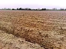 Les agronomes nomment parfois « sol » la couche arable (pellicule superficielle) homogénéisée par le travail du sol et notamment le labour (horizons O et A). On considère qu'un bon sol agricole présente une couche arable constituée de 25 % d’eau, 25 % d’air, 45 % de matière minérale et de 5 % de matière organique[26]. Le tassement et une semelle de labour peuvent induire une perte de rendement de 10 à 30 %, pouvant aller jusqu'à 50 %[27]. Le travail de l'agronome à la parcelle se base généralement sur une étude pédologique, l'analyse de sol et le profil cultural (profil de sol concernant les horizons colonisés par les racines : horizons O, A et B) ; l'effet des outils de travail et le régime hydrique y sont particulièrement pris en compte.