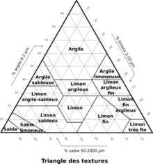 - Les éléments de taille inférieure à 2 mm sont définis par leur classe de texture (sables, limons et argiles), les argiles étant de par leur taille des particules colloïdales).