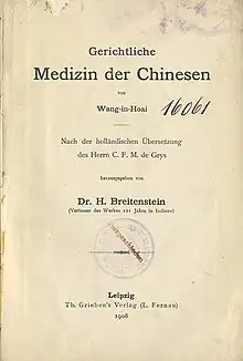 - ↑ « Brief History of Forensic Medicine in China », sur fdjpkc.fudan.edu.cn (consulté le )