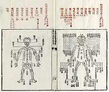 - ↑ (en) Lu Gwei-Djen et Joseph Needham, Celestial lancets : a history and rationale of acupuncture and moxa, Cambridge, Cambridge University Press, (ISBN 0-521-21513-7), p. 307-312.