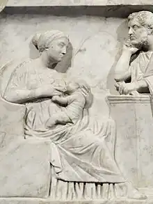 Les inscriptions de l'Antiquité désignent de nombreuses femmes sous les termes d'obstetrix et de médica, dont le sens exact est mal connu[37].