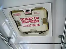 - Trappe d'évacuation : une ouverture dans le toit ou le plancher destinée à n'être utilisée comme issue par les voyageurs qu'en cas de danger.