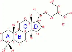 - ↑ stérol dérivé du squalène.