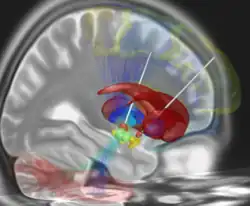 - ↑ (en) Temel Y, « Limbic effects of high-frequency stimulation of the subthalamic nucleus » Vitam Horm. 2010;82:47-63.