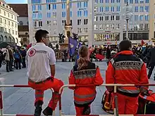 - ↑ Lucie Bras, « Les street medic viennent en aide aux blessés dans les manifestations », sur 20 minutes, (consulté le ).