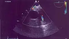 En échographie, on met parfois en évidence une fistule entre la coronaire gauche et la coronaire droite dilatée et absence de visualisation de la coronaire gauche qui ne naît pas de l'ostium coronaire mais qui sort de la partie antérieure du tronc coronaire et flux continu diastolique dans l'artère pulmonaire vélocité basse éliminant un canal artériel. Elle se situe parfois dans une branche de l'artère pulmonaire mais dans ce cas nécessite le scanner.