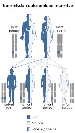 Il s'agit d'une transmission autosomique récessive.