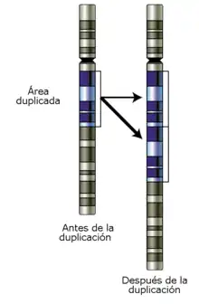 Ces syndromes surviennent lorsqu'une petite région d'un chromosome est dupliquée. Ils peuvent affecter les mêmes zones que les microdélétions, c'est pourquoi parfois les deux groupes sont désignés sous l'intitulé « syndromes de microdélétion et microduplication » (MMS). Un exemple est le syndrome de microduplication 22q11.2, qui provoque diverses anomalies chez les enfants atteints ; il est dû à une duplication du matériel génétique dans la région q11 du chromosome 22. Le syndrome de microdélétion affectant la même zone du chromosome est le syndrome de Di George[21].
