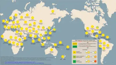 - ↑ Hui Li et al., « Refined Geographic Distribution of the Oriental ALDH2*504Lys (nee 487Lys) Variant », Ann Hum Genet, vol. 73, no Pt 3, , p. 335–45 (PMID 19456322, PMCID 2846302, DOI 10.1111/j.1469-1809.2009.00517.x)