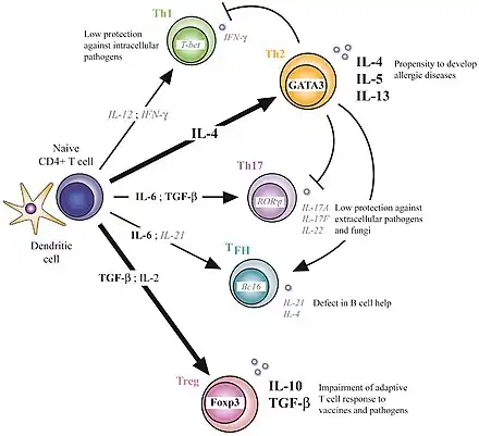 L'immunité adaptative est spécifique pour une espèce donnée et a un mécanisme de mémoire. Le système immunitaire adaptatif permet d'amplifier la réponse immunitaire et confère à la fois une réponse spécifique à l'antigène, et donc particulièrement adaptée à l'agent infectieux, et une réponse mémoire permettant une élimination plus efficace du même agent infectieux si l'organisme y est de nouveau confronté[3]. Les cellules de l'immunité adaptative constituent ainsi un complément essentiel de la réponse immunitaire innée.