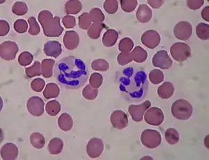 Les neutrophiles sont les phagocytes les plus nombreux, constituant 50 % à 60 % de l'ensemble des leucocytes circulants, et sont parmi les premières cellules recrutées au site d'infection. La moelle osseuse d'un individu sain adulte produit environ 100 milliards de neutrophiles par jour, et environ 10 fois plus au cours d'une infection aigüe. Le passage des polynucléaires neutrophiles dans le sang est rapide et bref, car ils jouent leur rôle essentiellement dans les tissus, où ils sont le principal agent cellulaire anti-bactérien. La durée de vie du polynucléaire neutrophile est très courte , de 7 à 24 heures , et il est entièrement consommé par sa fonction[40].