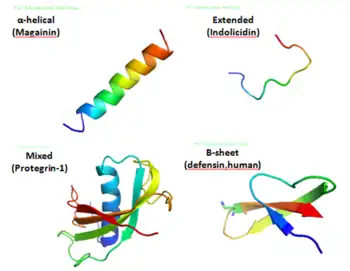Il a été démontré que les peptides antimicrobiens tuent les bactéries à Gram négatif et à Gram positif, les virus enveloppés, les champignons et même les cellules transformées ou cancéreuses[25],[26].