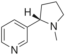 Dans la plante fraiche de Nicotiana tabacum, on trouve un mélange d'alcaloïdes composés de 93 % de (S)-nicotine, 3,9 % de (S)-anatabine, de 2,4 % de (S)-nornicotine, et de 0,5 % de (S)-anabasine.