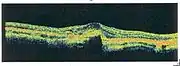La tache de Fuchs est une maladie dû à une forte myopie. Une hémorragie maculaire survient à la suite d'étirements de la rétine, souvent avec la formation de néovaisseaux, d’où une perte de l’acuité visuelle.