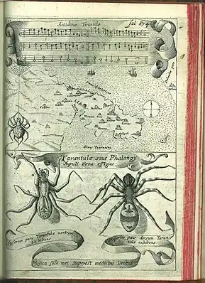 - ↑ G. Baglivi, Opera omnia, Lugdini, 1733, "Caput IX, De Tarentula", p. 622.