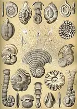 Les foraminifères (Foraminifera en latin) sont des organismes eucaryotes unicellulaires prédateurs, principalement marins, et généralement protégés par une coquille. Celle-ci peut être constituée d'une seule chambre ou avoir de multiples cavités interconnectées. La machinerie cellulaire est contenue dans cette coquille. Le test est tellement important à la biologie du groupe taxonomique qu'il lui donne son nom scientifique — foraminifera, du latin foramen (« trou »), « qui porte des trous » — en référence aux pores connectant les chambres de la coquille de certaines espèces.