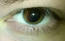 L'examen externe des yeux consiste en une inspection des paupières, des tissus environnants et de la fente palpébrale. La palpation du bord orbitaire peut également être réalisée, en fonction des signes et symptômes qui se présentent. La conjonctive et la sclère peuvent être inspectées en faisant lever les yeux de l'individu et en faisant briller une lumière tout en rétractant la paupière supérieure ou inférieure. La position des paupières est vérifiée pour des anomalies telles que la ptose, une asymétrie entre les positions des paupières[1].