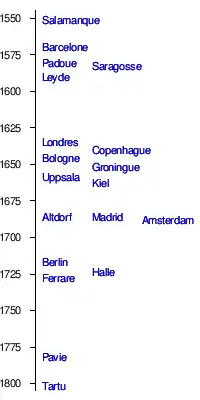 Chronologie non exhaustive de la diffusion des théâtres anatomiques permanents
