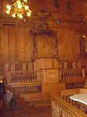 - Statue en bois représentant Claude Galien dans le théâtre anatomique