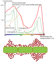 - ↑ T.W. Engelmann, « Über Sauerstoffausscheidung von Pflanzenzellen im Mikrospectrum », Bot. Zeit., vol. 40, , p. 419–426