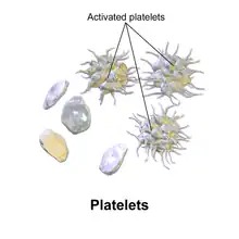 À l'état normal, les plaquettes sont lisses et se déplacent de manière fluide dans le flux sanguin. Lorsqu'elles sont activées, elles émettent des spiculations et libèrent les granules prohémostatiques qu'elles contiennent[5].