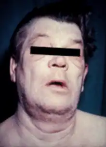 Ces derniers sont liés à la dysthyroïdie avec au premier plan l'hypothyroïdie. L'hyperthyroïdie peut également être présente, en particulier au début de l'évolution de la maladie. On soulignera que les signes de dysthyroïdie peuvent être absents initialement, la fonction thyroïdienne n'étant pas nécessairement perturbée. En revanche plus la maladie évolue et plus l'hypothyroïdie devient fréquente.