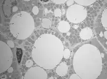 Les adipocytes bruns multiloculaires sont moins nombreux chez l'adulte que les adipocytes blancs uniloculaires. Contrairement à ces derniers qui ont un noyau repoussé à une extrémité de la cellule par la vacuole lipidique unique contenant du triacylglycérol, les adipocytes multiloculaires possèdent un noyau central.