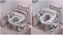 Bien que rare, on peut parfois trouver le modèle avec un siège pouvant être abaissé ou relevé. En position basse, il est utilisé comme des toilettes traditionnelles. En position haute, on l'utilise essentiellement comme des toilettes occidentales. Ce modèle hybride semble surtout exister dans les zones rurales pour le confort des résidents étrangers, mais les adaptateurs qui s'installent sur le dessus des toilettes japonaises pour les transformer en toilettes « assises » sont bien plus fréquents[30].