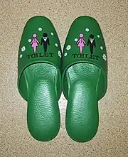 Ils peuvent être aussi simples qu'une paire de chaussons en caoutchouc, décorés avec des personnages de dessins animés pour les enfants, ou même en fourrure animale pour les modèles plus luxueux. Une erreur fréquente pour les étrangers est d'oublier de retirer les chaussons de toilettes après être allé aux WC et de marcher avec dans le reste de la maison, mélangeant ainsi les zones « propres » et « non propres »[36],[37]. Néanmoins, même certains Japonais n'utilisent pas ces chaussons de toilettes[réf. nécessaire].