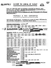 Le premier exemplaire connu du tract a été publié en en France, sous forme d'une page dactylographiée. Son auteur est inconnu. Il fait référence à l'article de Science et vie, mais pas encore à l'hôpital de Villejuif. Il classe les additifs alimentaires en « cancérigène », « suspect », ou « inoffensif ». Des versions successives indiquent « distribué à l'hôpital de Villejuif », « distribué par l'hôpital de Villejuif » et enfin « L'hôpital de Villejuif informe[3]... » Des détails fantaisistes sur les effets des additifs apparaissent, ainsi que des noms de marques à éviter. Lors d'un sondage de 150 ménagères, 19 % indiquent qu'elles ont arrêté d'acheter les marques en question, et 69 % envisagent de le faire[4].